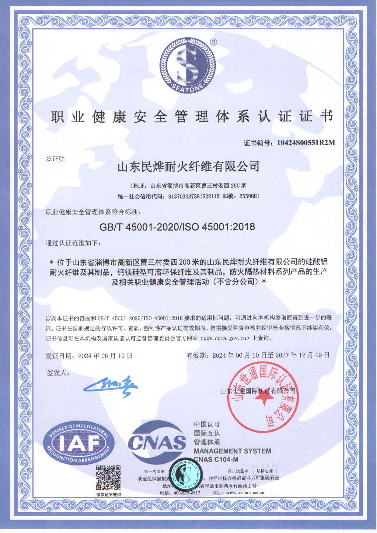 職業(yè)健康安全管理體系認(rèn)證證書(shū)